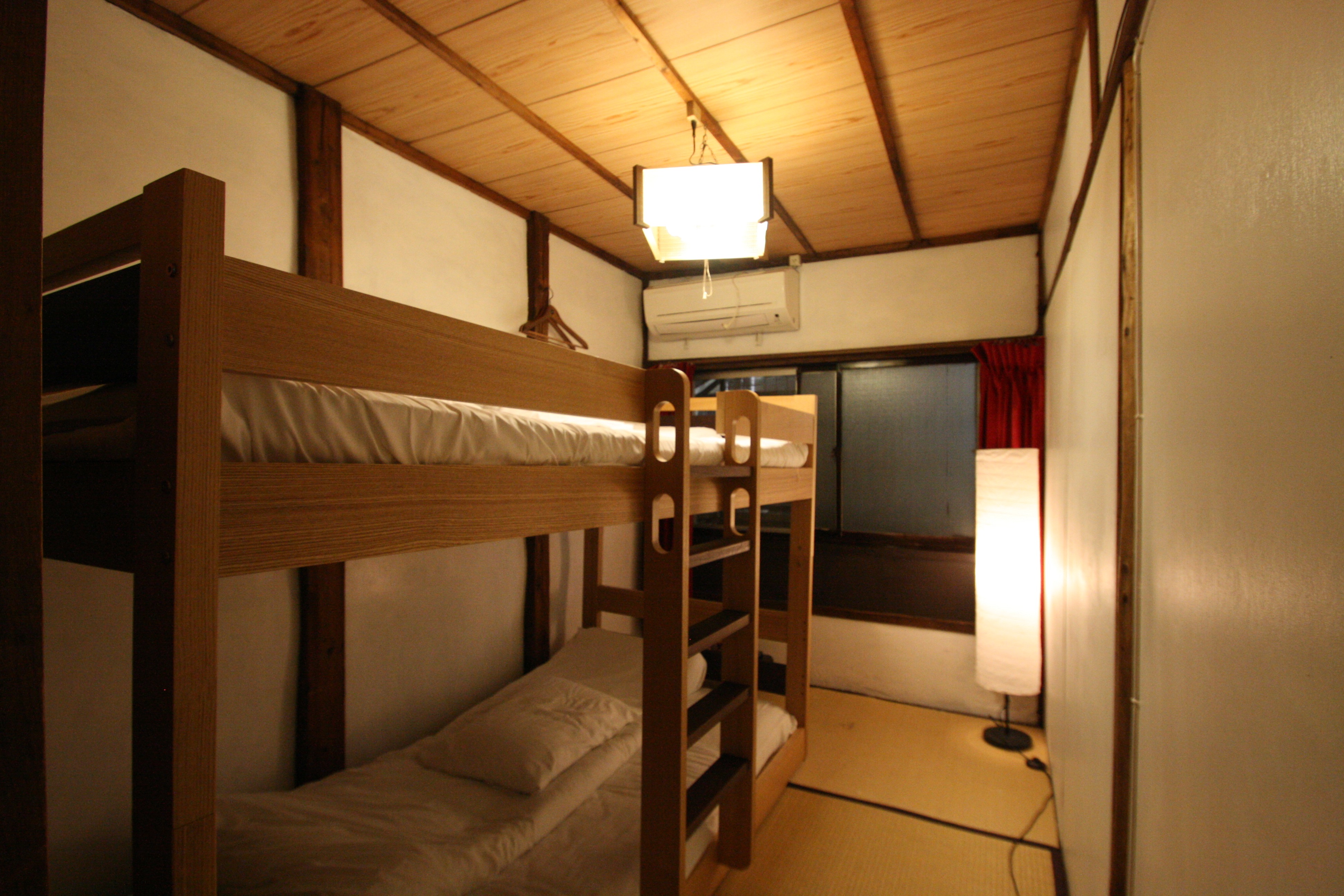 2段ベッドのドミトリータイプの和室です。費用は抑えながらもプライベート感を大切にしたい方にお勧めです。町家ならではの趣ある滞在をお楽しみください。