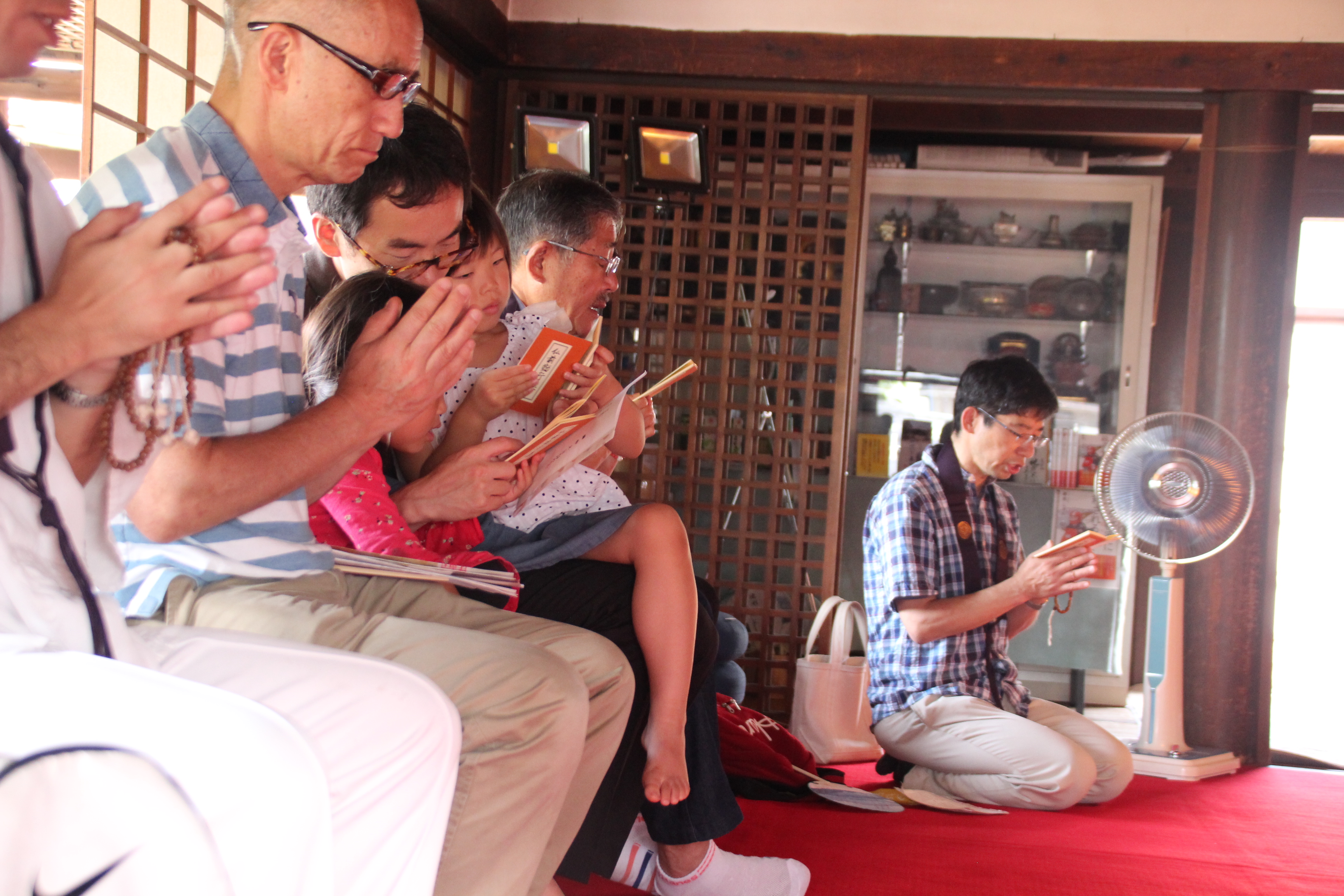 貸し出し用の経本があり、僧侶と一緒にお経を唱えます。朝早くにもかかわらず、子供や外国人も含め、大勢の方が訪ねてこられます。